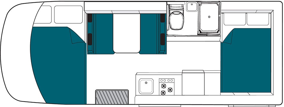 Bett Essecke im Heck umgebaut 1.48 x 2.26 m