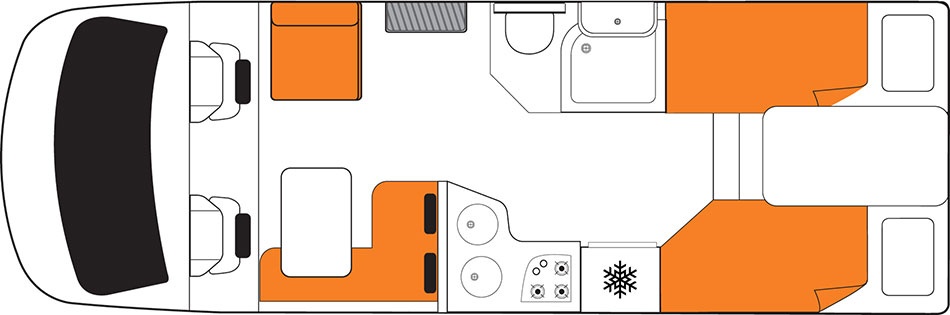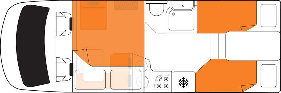 1 x Doppelbett im Heck (m) 2.10 x 1.93