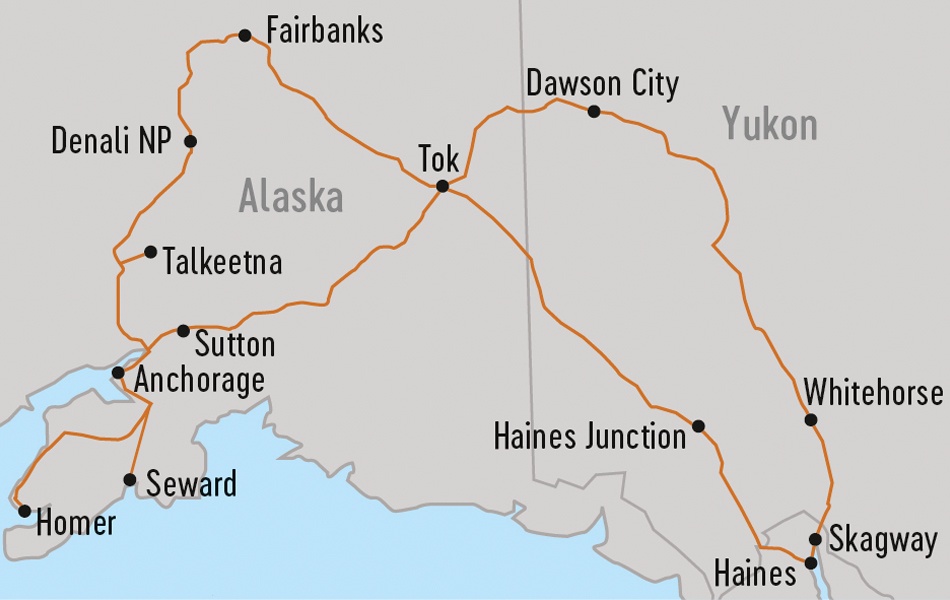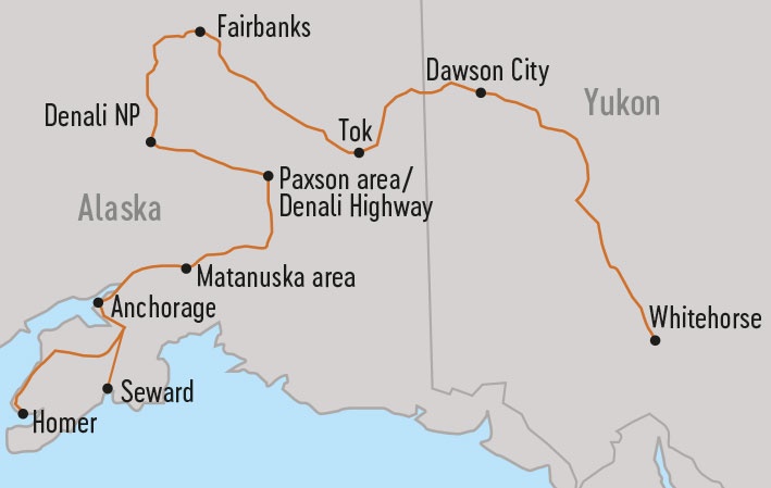Fahren Sie auf den landschaftlich reizvollsten Routen durch Alaska und den Yukon und nehmen Sie sich Zeit, die Natur zu erkunden, während Sie auf einer Schotterstrasse durch die Wildnis fahren. Von den südlichen Fischerdörfern in Homer und Seward über Bergpässe bis hin zum Landesinneren mit seiner rauen Natur - auf dieser Reise findet Ihre Seele viele Orte, die um den schönsten Platz auf Erden wetteifern. Ein besonderes historisches Erlebnis ist die Goldgräberstadt Dawson am Fusse des Top of the World Highway, die Sie mit der nördlichen Gastfreundschaft einer längst vergangenen Ära empfängt.