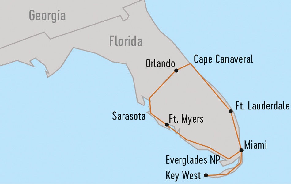 Willkommen im Sunshine State! Paradiesische Strände und azurblaues Wasser aber auch eine einzigartige Tierwelt und spannende Vergnügungsparks erwarten Sie. Diese neuntägige Rundreise führt Sie zu den Florida Keys, zum Everglades National Park, zu den weissen Badestränden an der Golfküste, in die Phantasiewelten von Orlando und an die schnurgerade Atlantikküste.